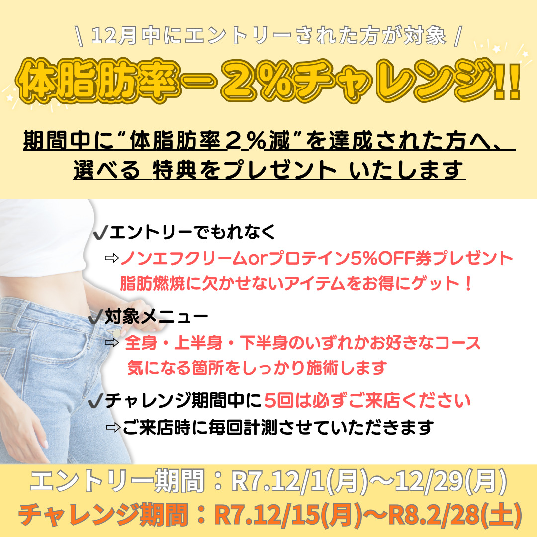 ✔️さらに、期間中に“体脂肪率2%減”を達成された方には